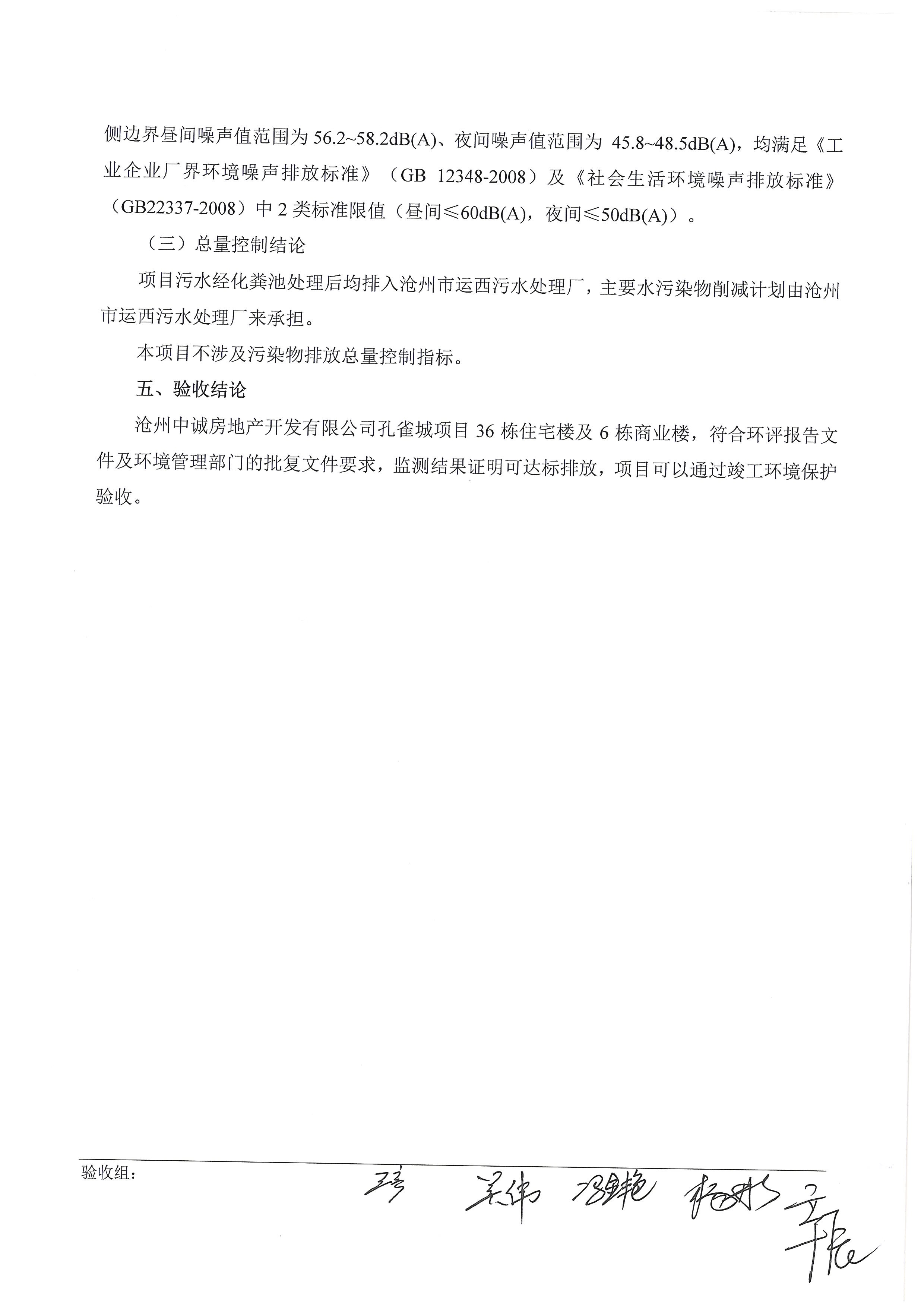 沧州中诚房地产开发有限公司孔雀城验收意见