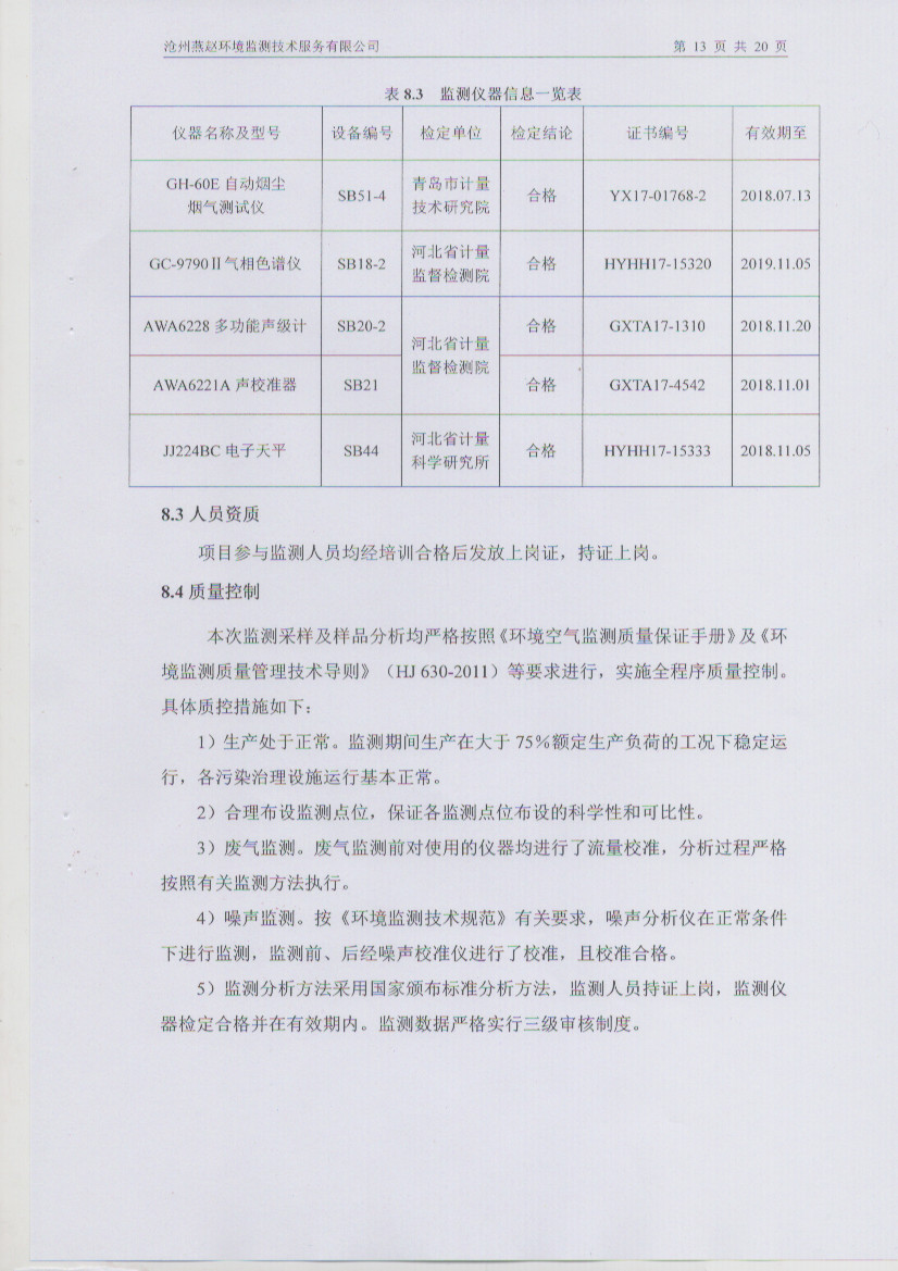 沧州燕赵环境监测技术服务有限公司建有满足《检验检测机构资质认定评审准则》要求的管理体系,有保证检测质量的措施,能独立、公正、科学、诚信地开展工业废气检测工作。