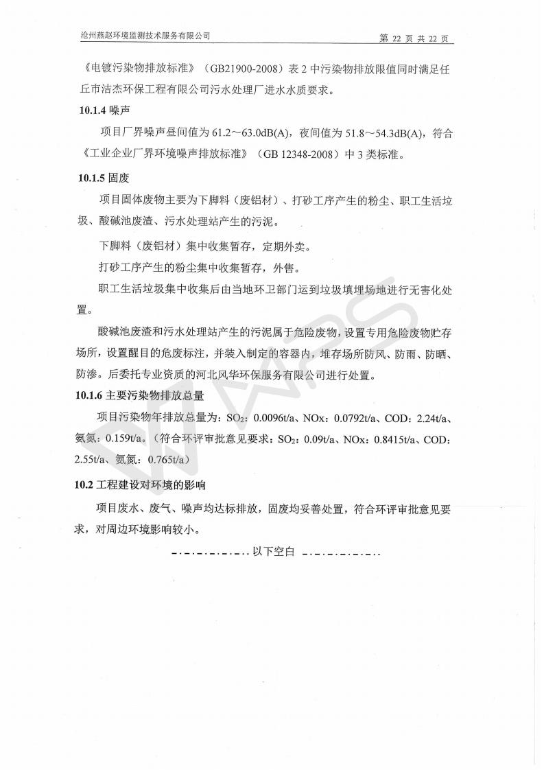 任丘市五环铝业有限公司验收报告