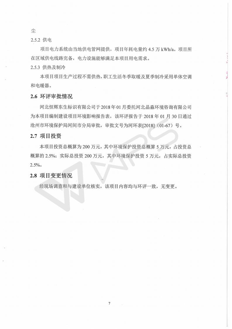 河北恒辉东生标识有限公司验收监测报告
