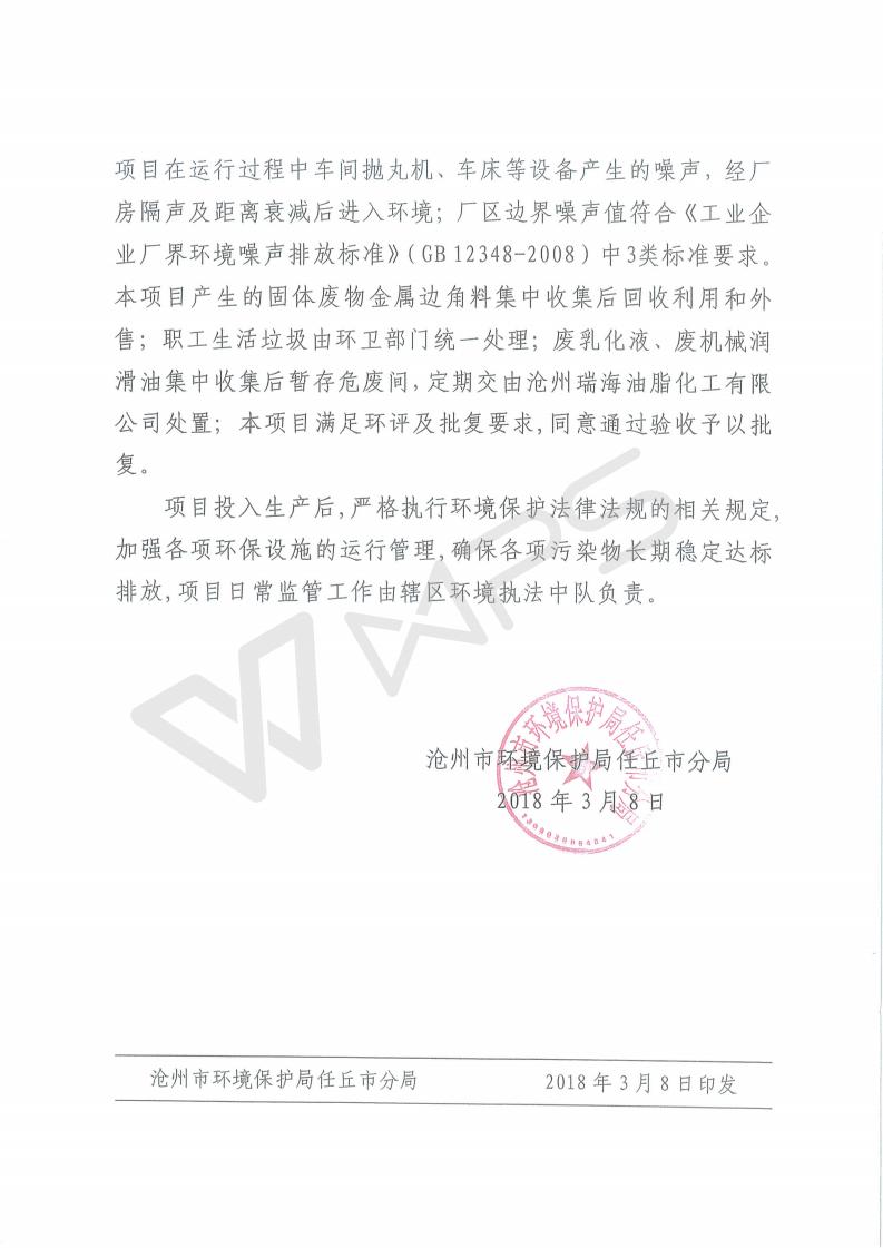 任丘市光明机械配件加工厂验收报告