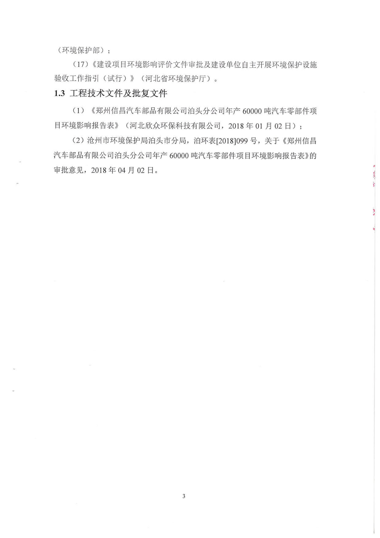 郑州信昌汽车部品有限公司泊头分公司验收报告