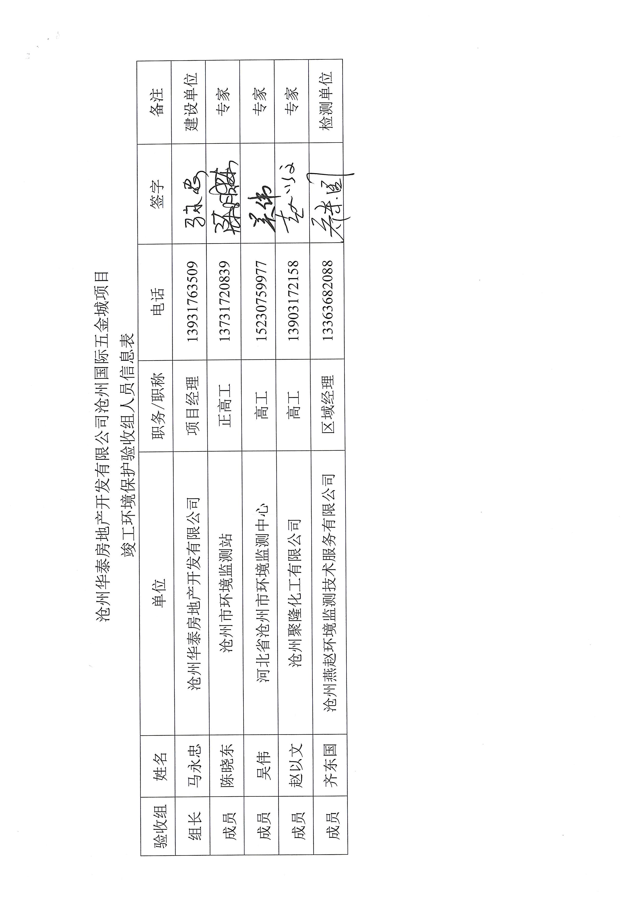 沧州华泰房地产开发有限公司验收意见