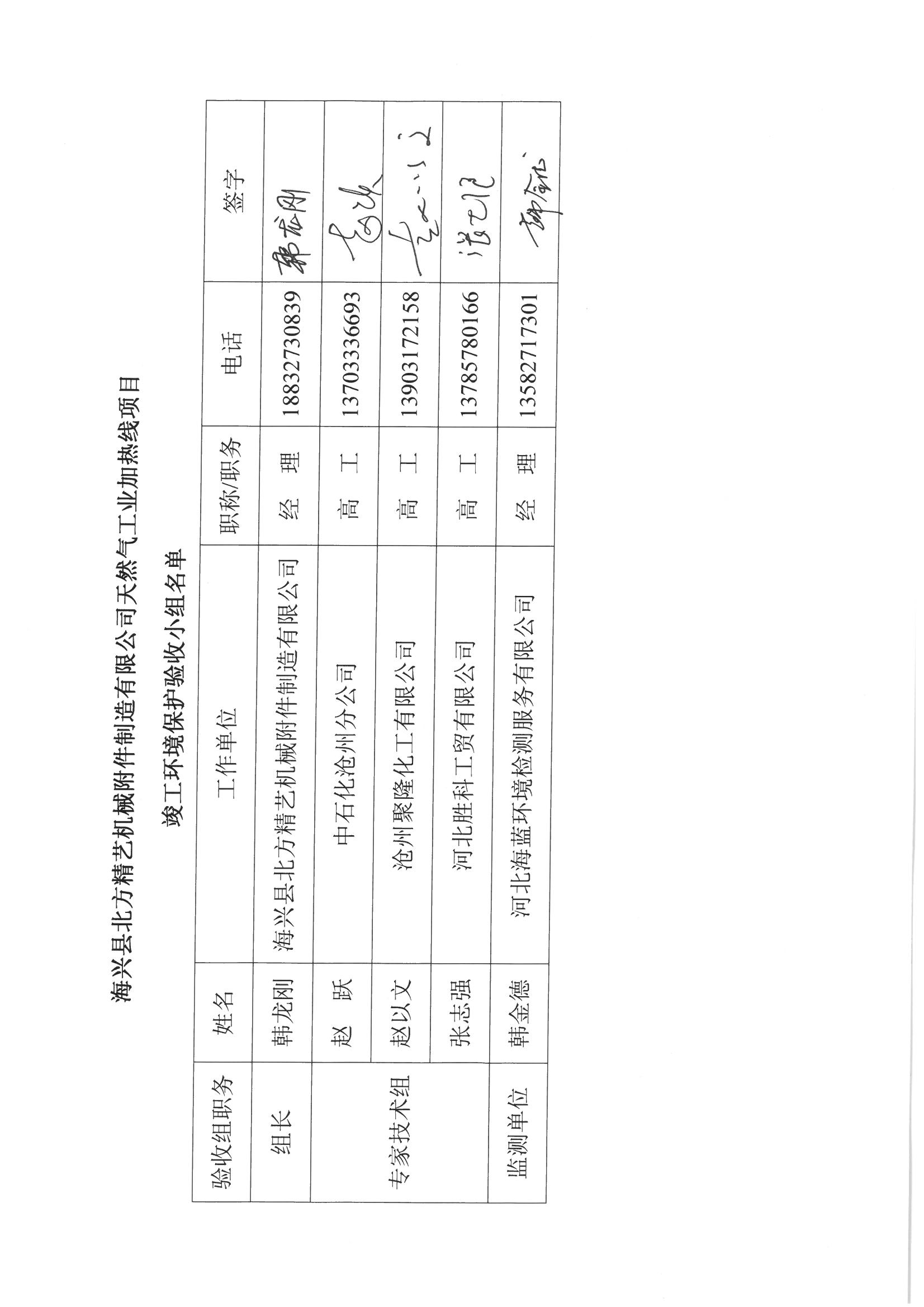 海兴县北方精艺机械附件制造有限公司+验收意见