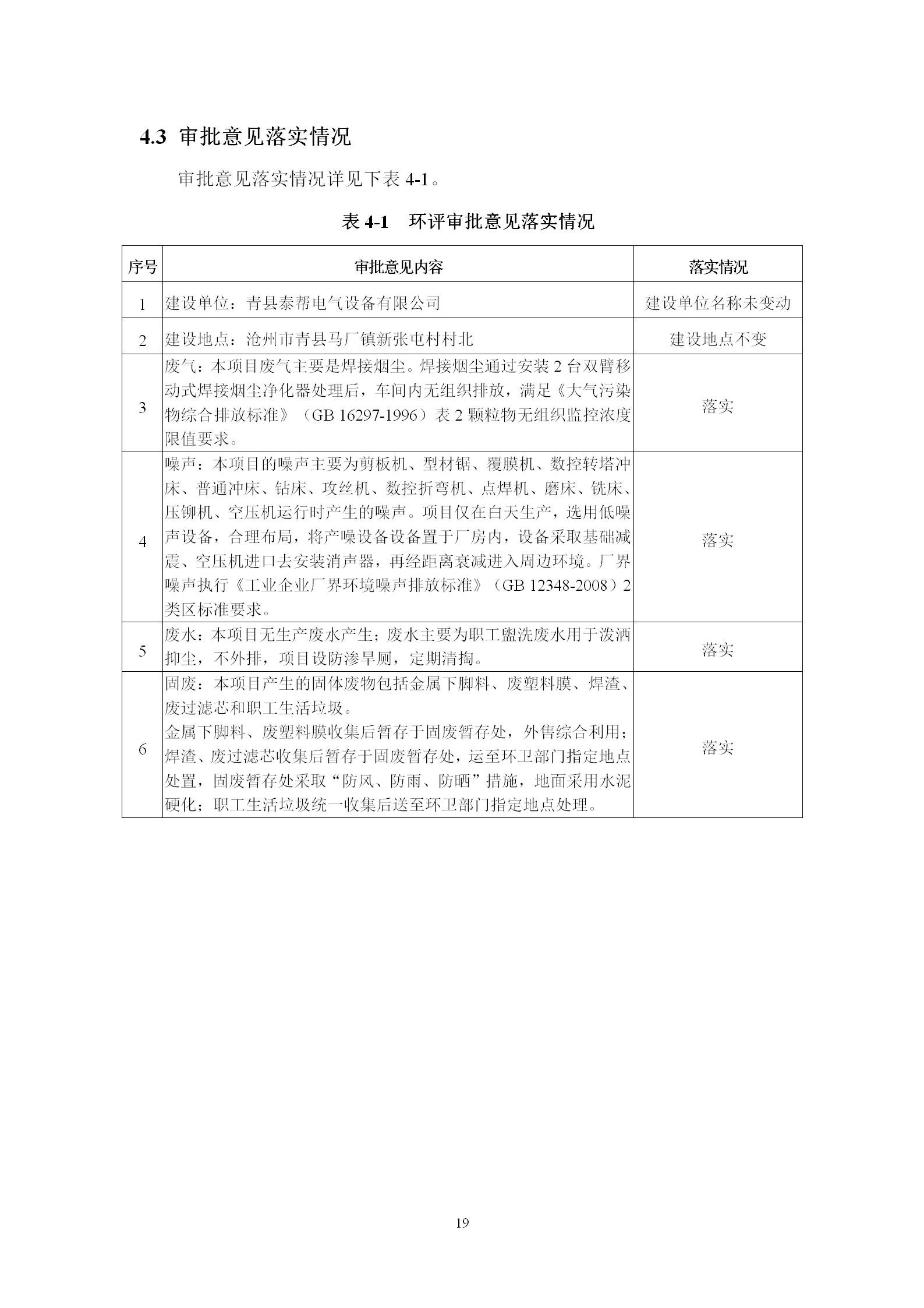青县泰帮电气设备有限公司验收报告