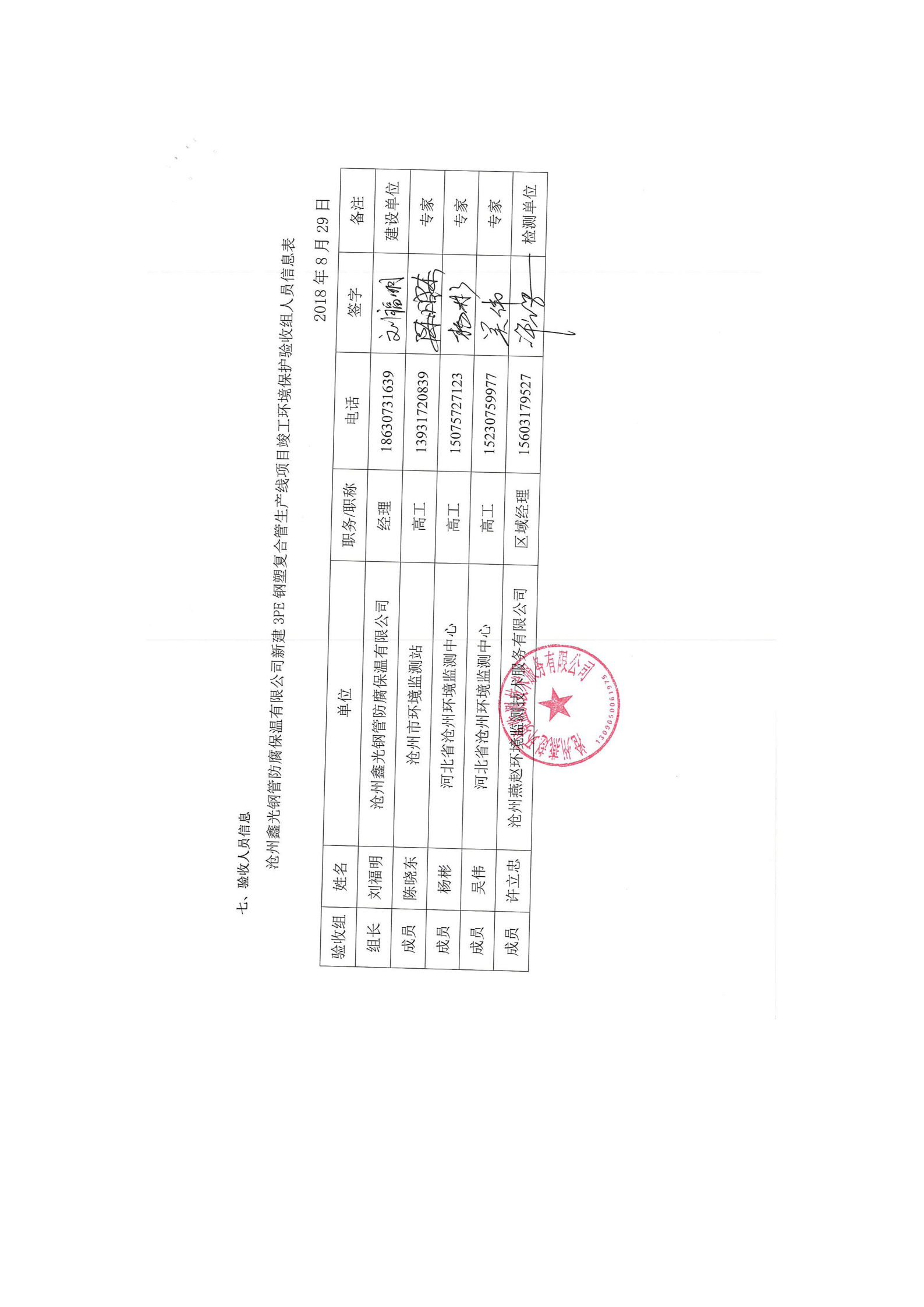 沧州鑫光钢管防腐保温有限公司+验收意见
