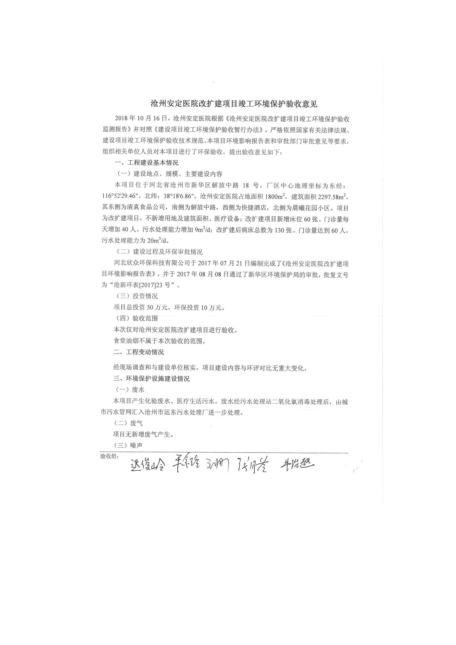 沧州安定医院+验收意见