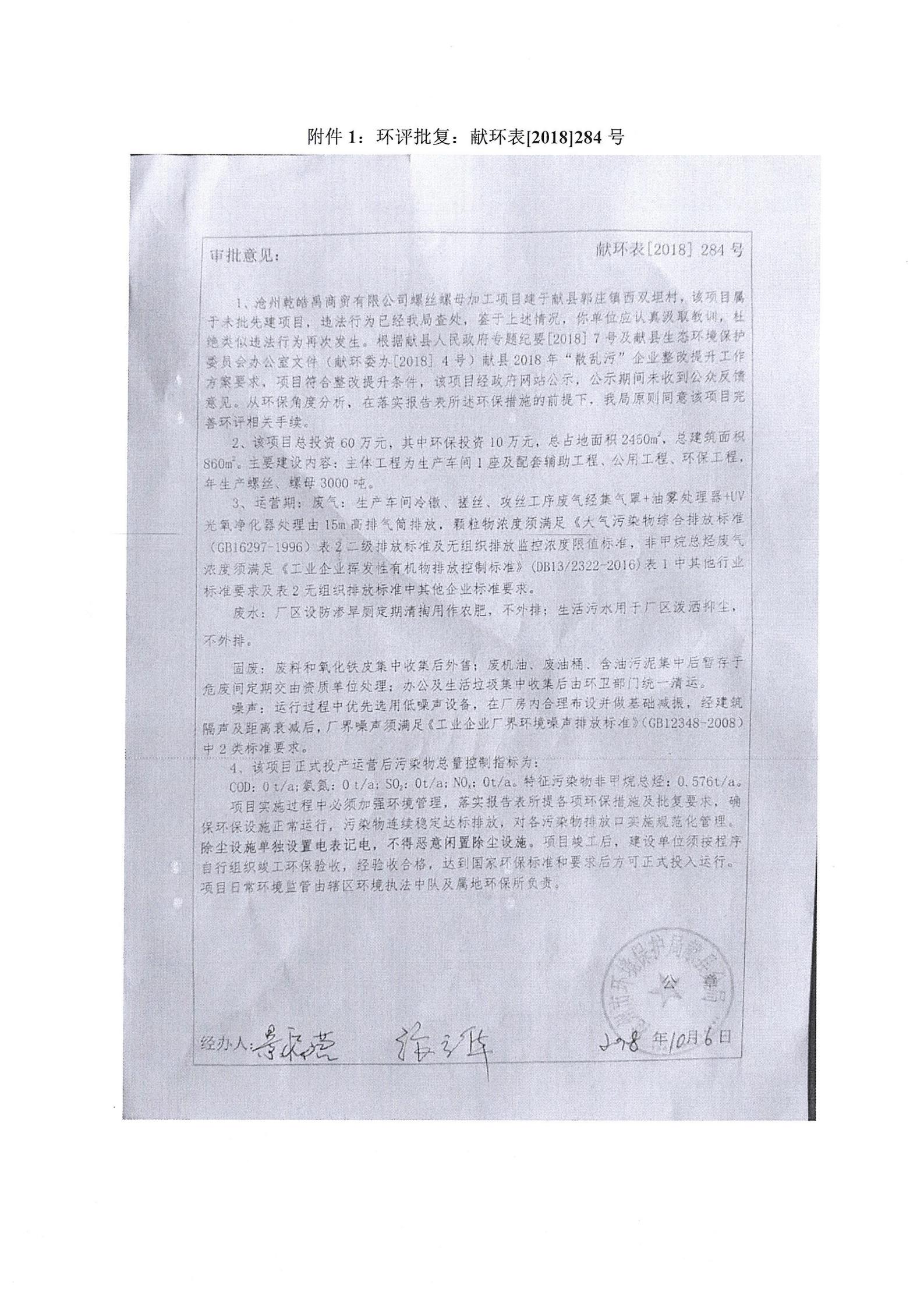 沧州乾皓禹商贸有限公司+验收报告