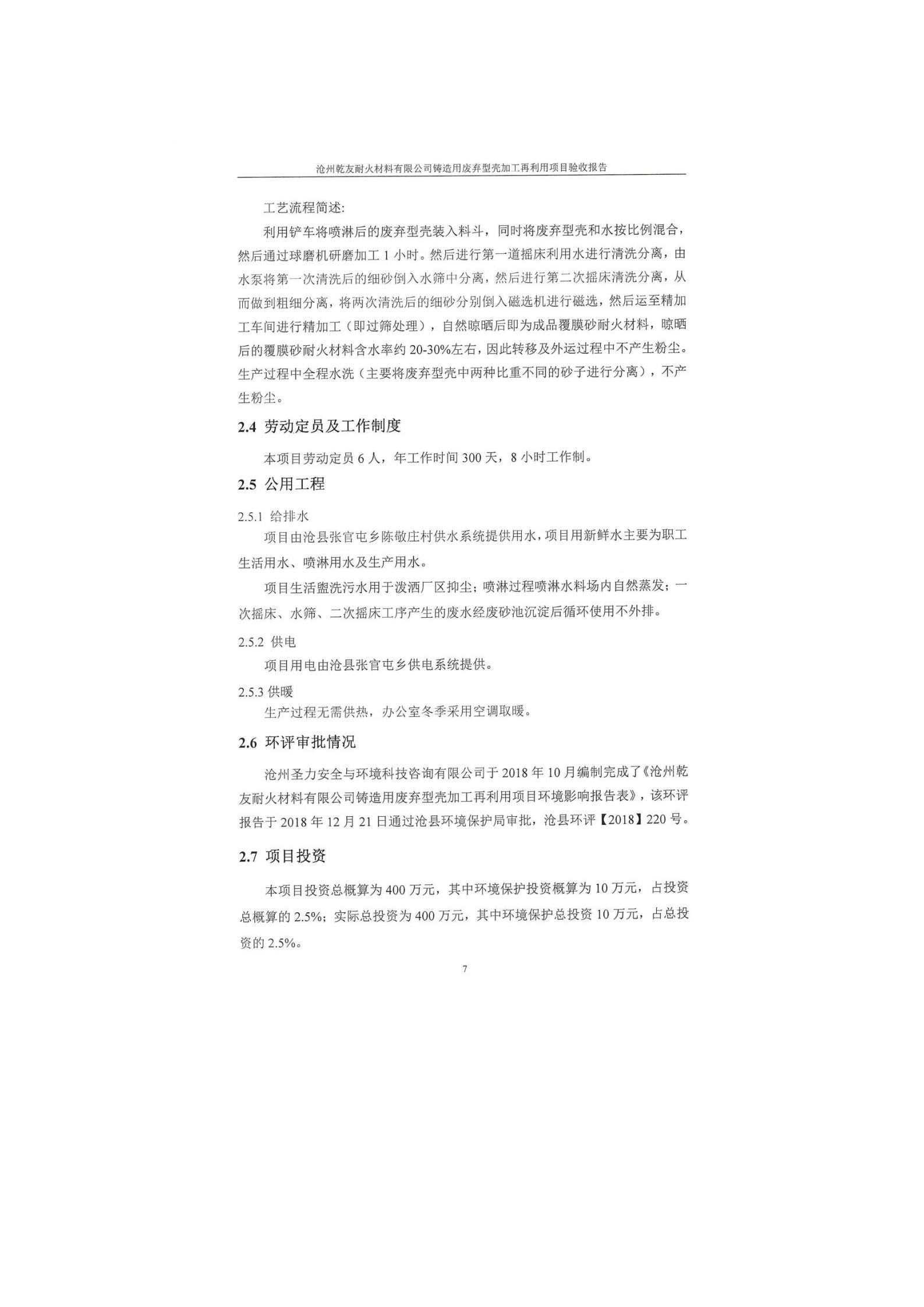 沧州乾友耐火材料有限公司铸造用废弃型壳加工再利用项目