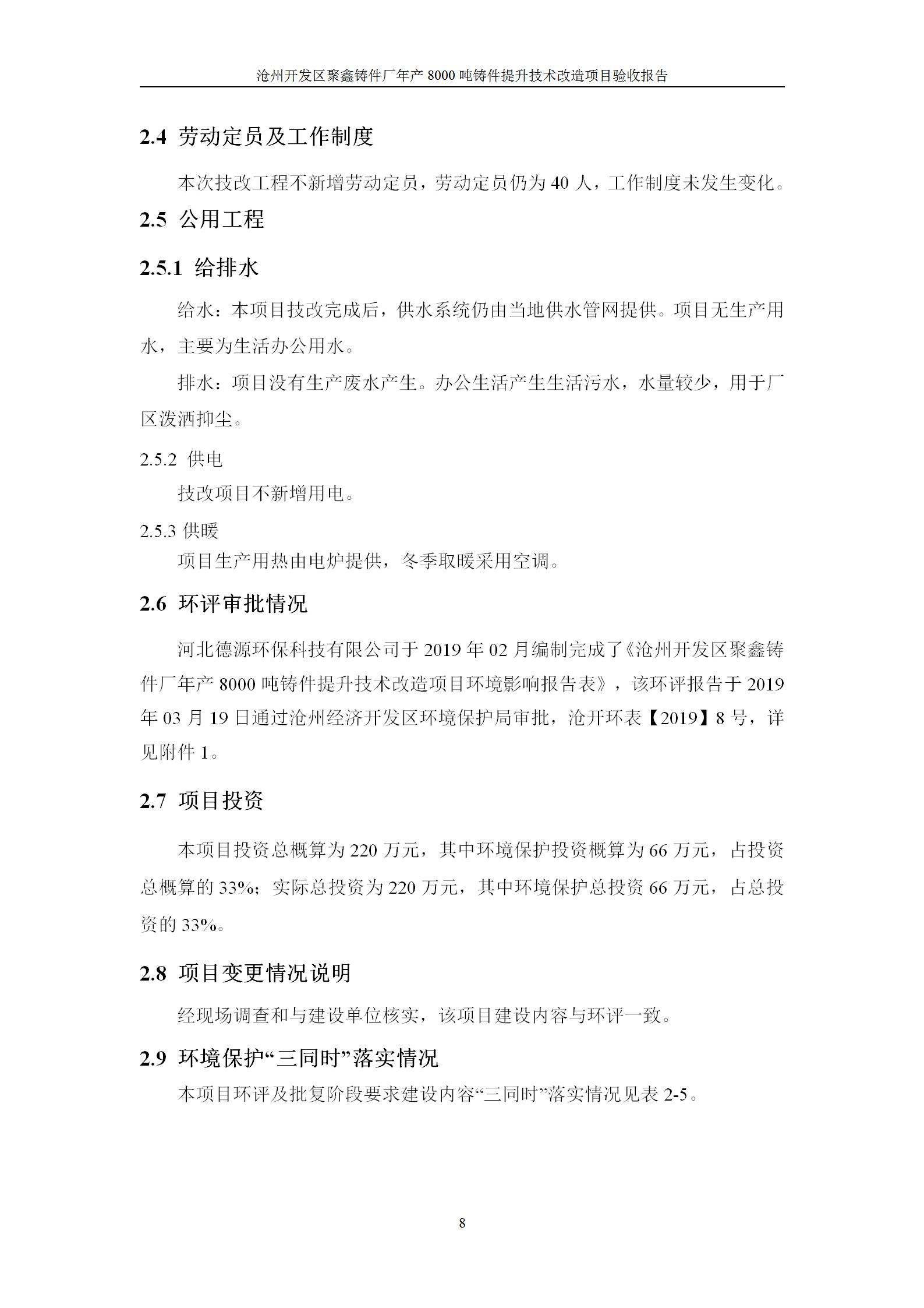 沧州开发区聚鑫铸件厂年产8000吨铸件提升技术改造项目