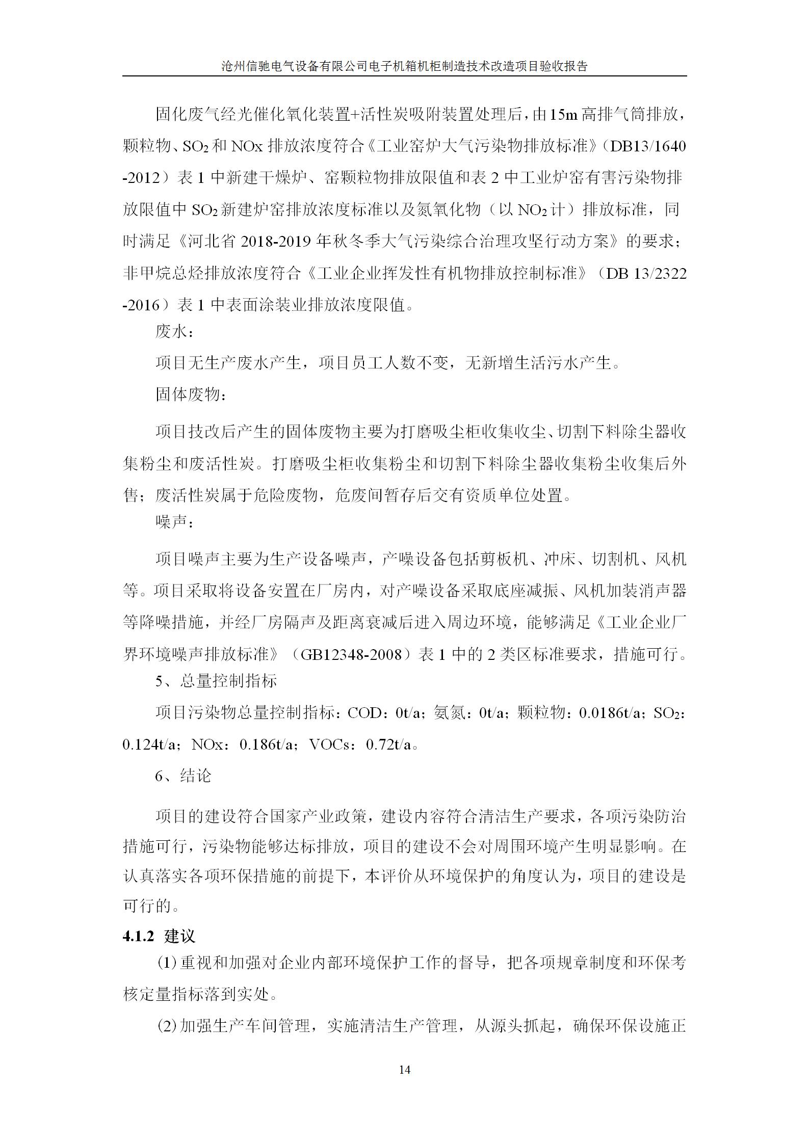 沧州信驰电气设备有限公司+验收报告
