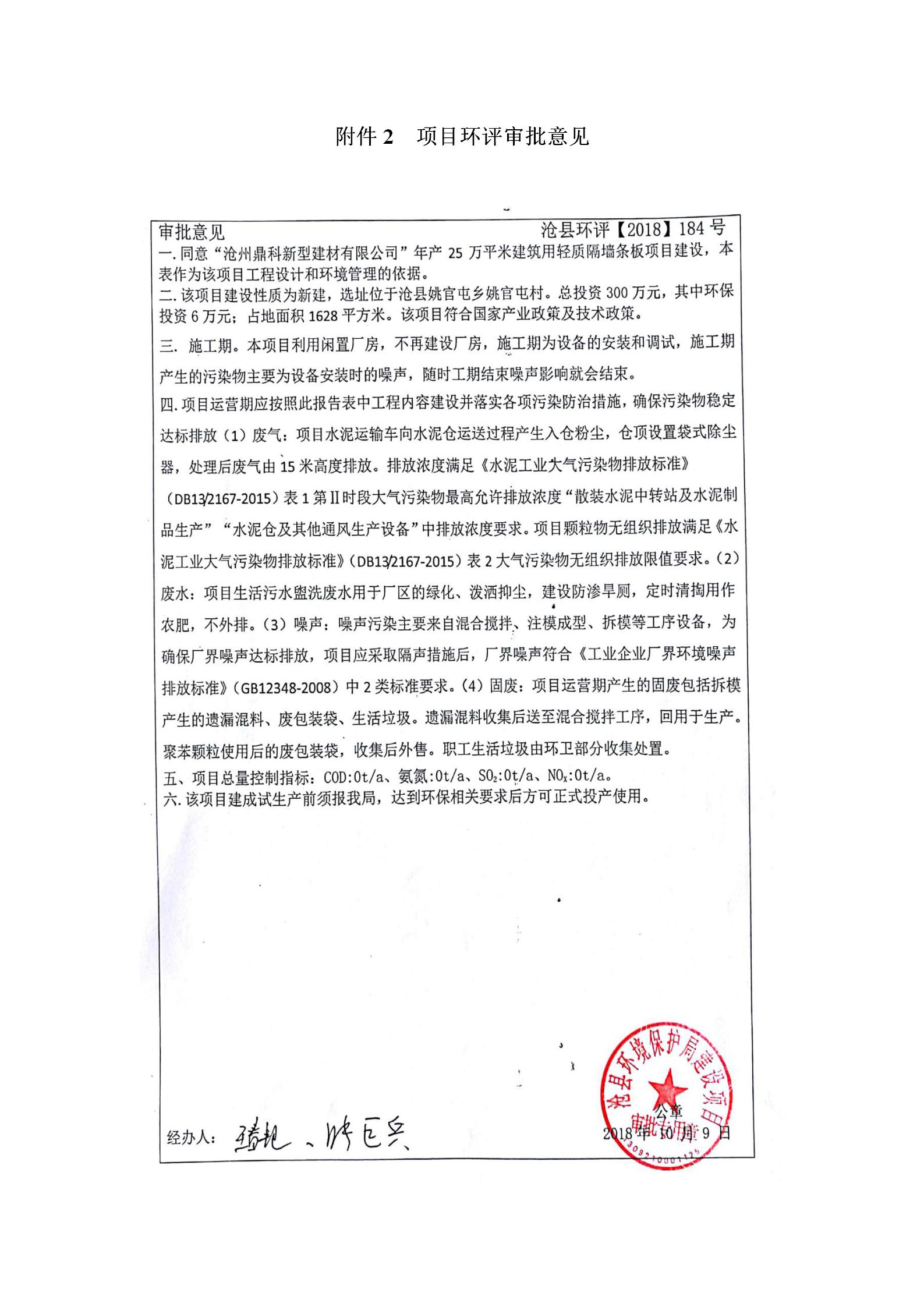 沧州鼎科新型建材有限公司+验收报告