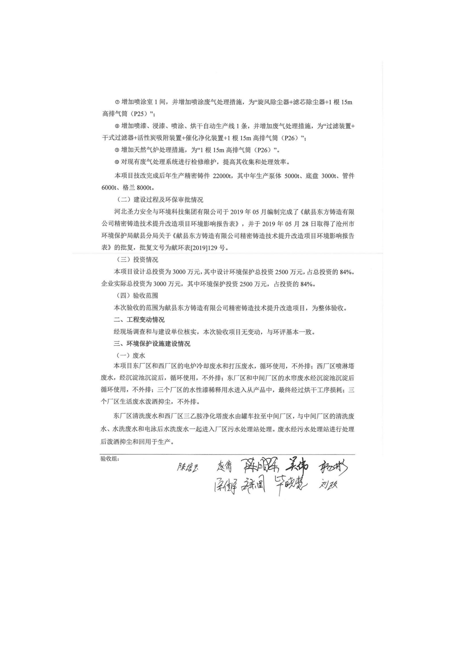 献县东方铸造有限公司+验收意见