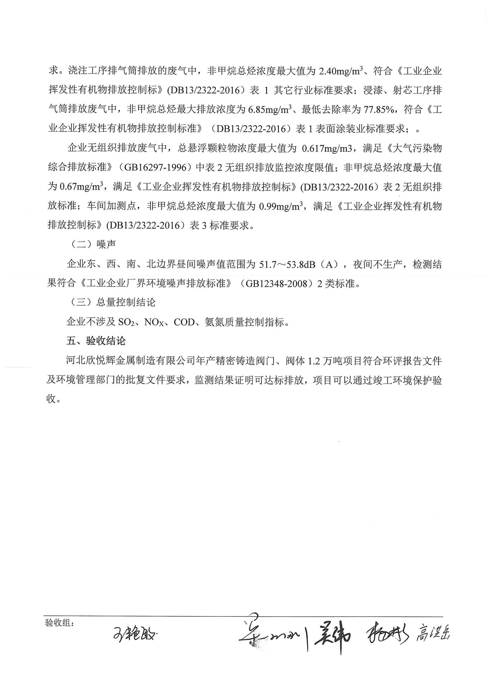 河北欣悦辉金属制造有限公司年产精密铸造阀门、阀体1.2万吨项目