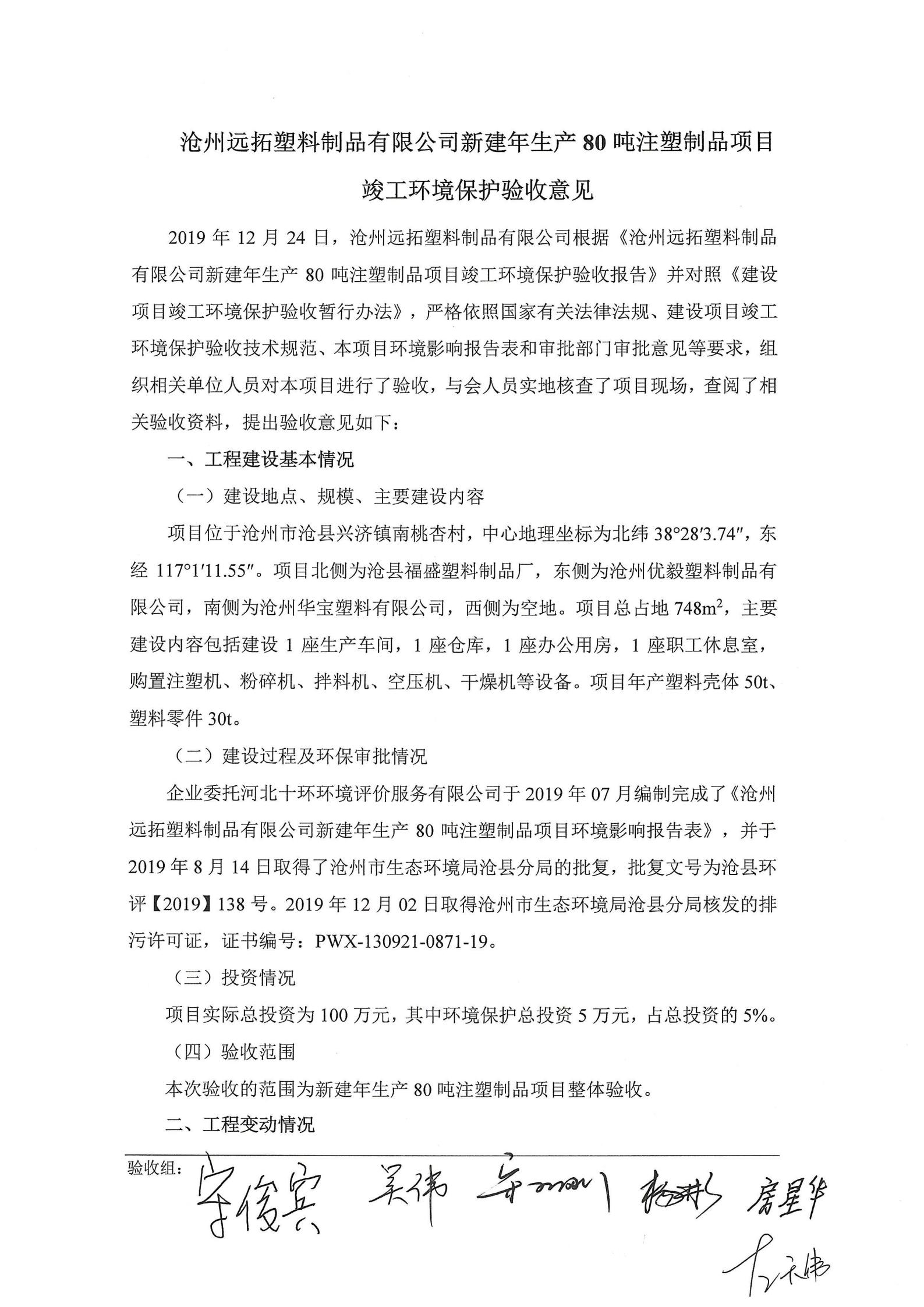 沧州远拓塑料制品有限公司新建年生产80吨注塑制品项目