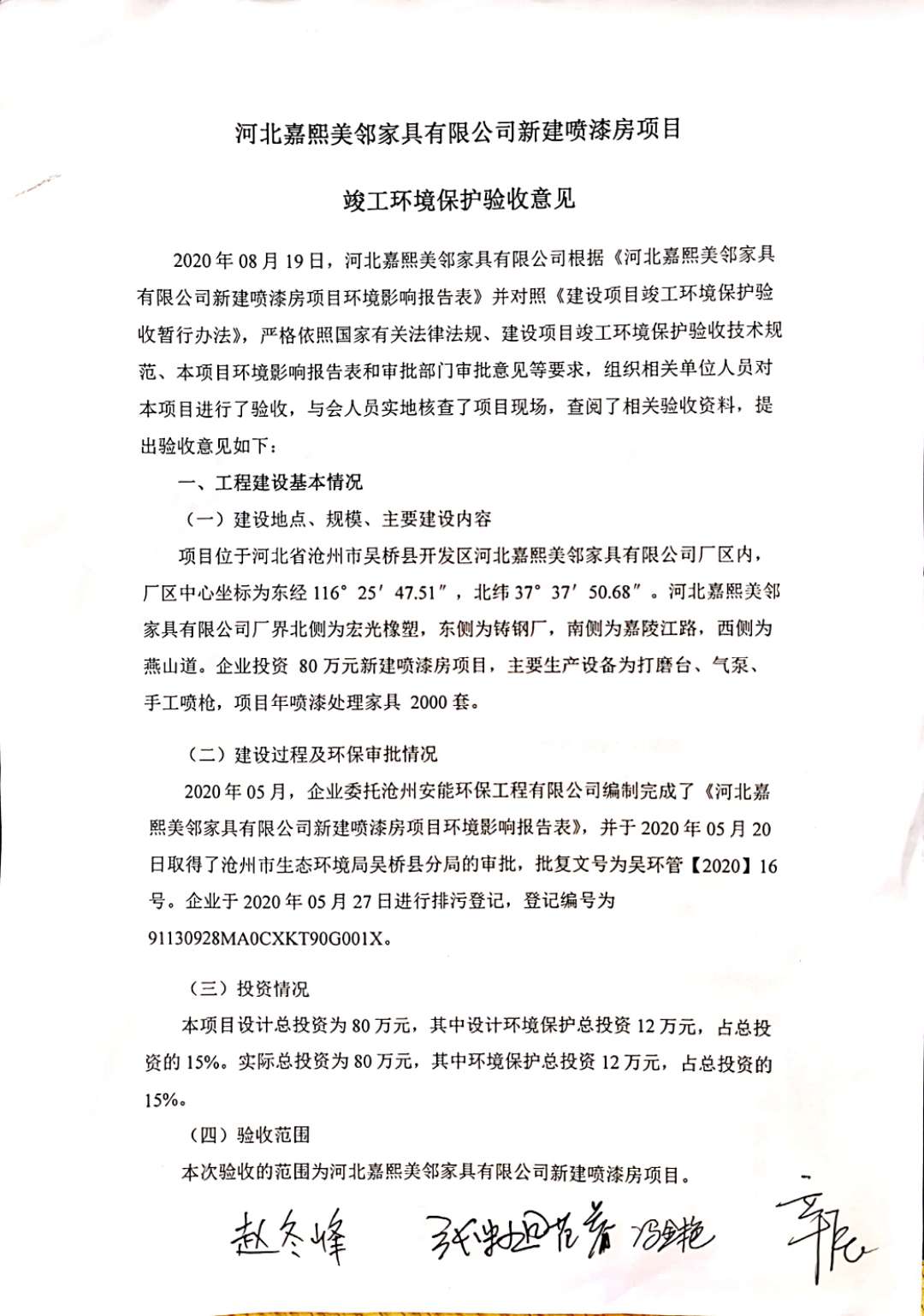 河北嘉熙美邻家具有限公司新建喷漆房项目
