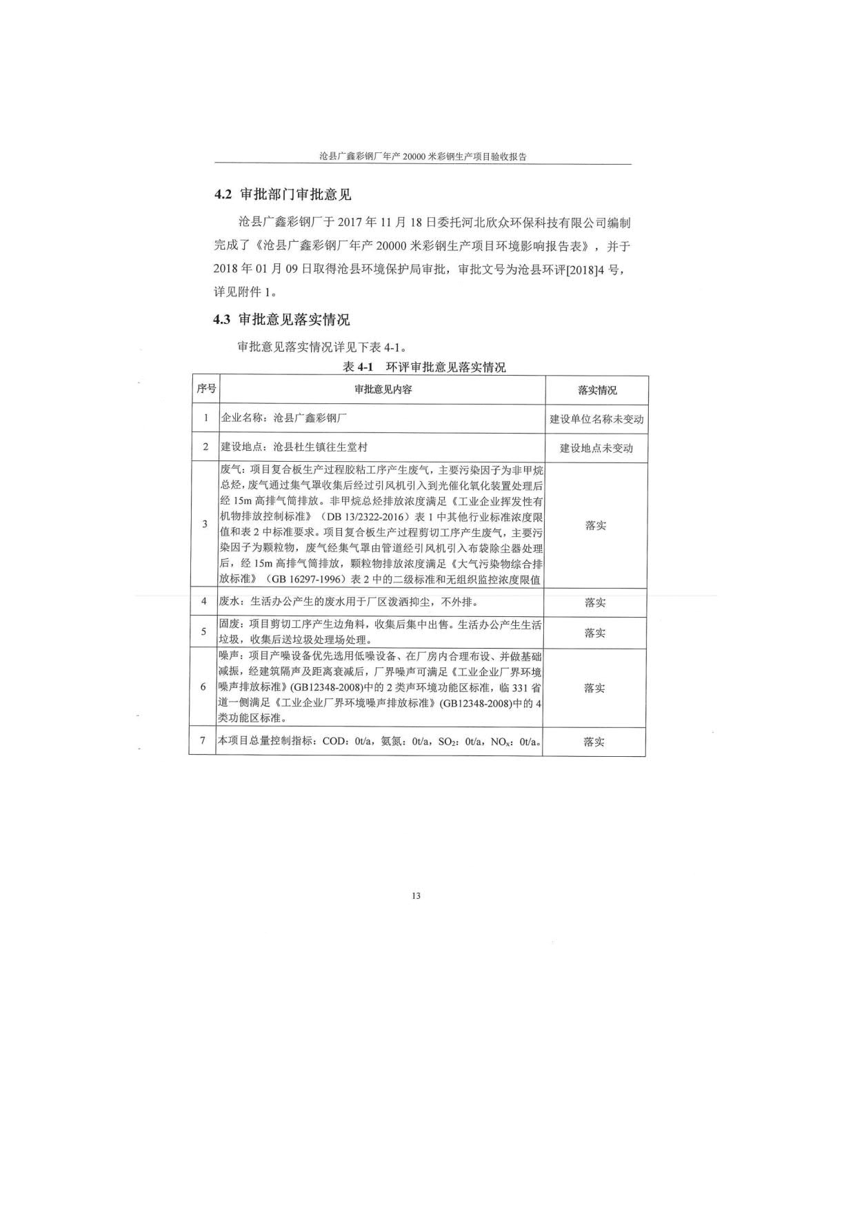 沧县广鑫彩钢厂年产20000米彩钢生产项目竣工环境保护验收报告