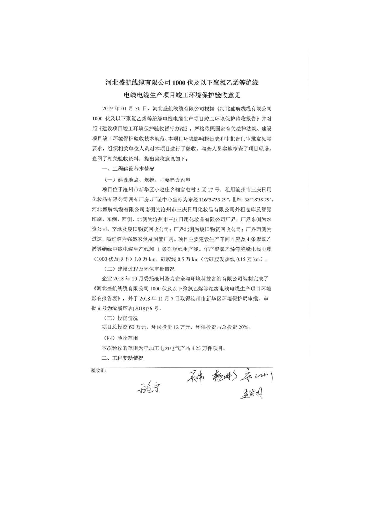 河北盛航线缆有限公司1000伏及以下聚氯乙烯等绝缘电线电缆生产项目
