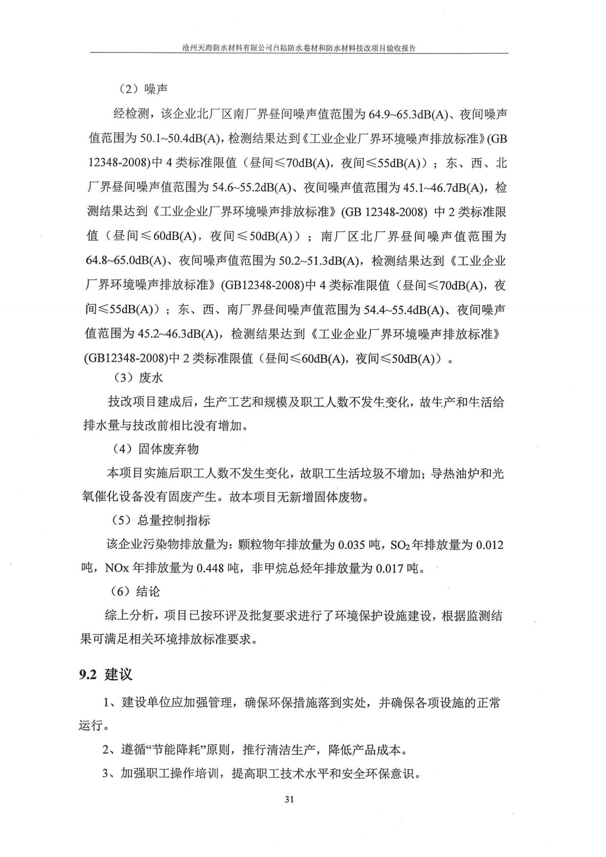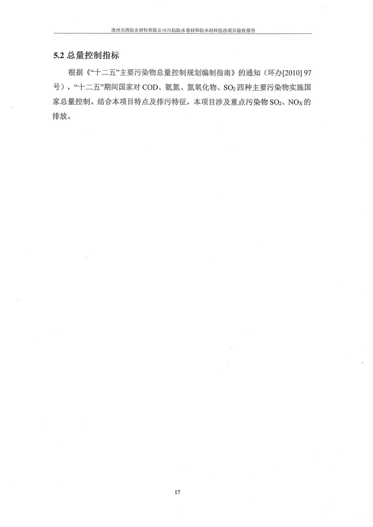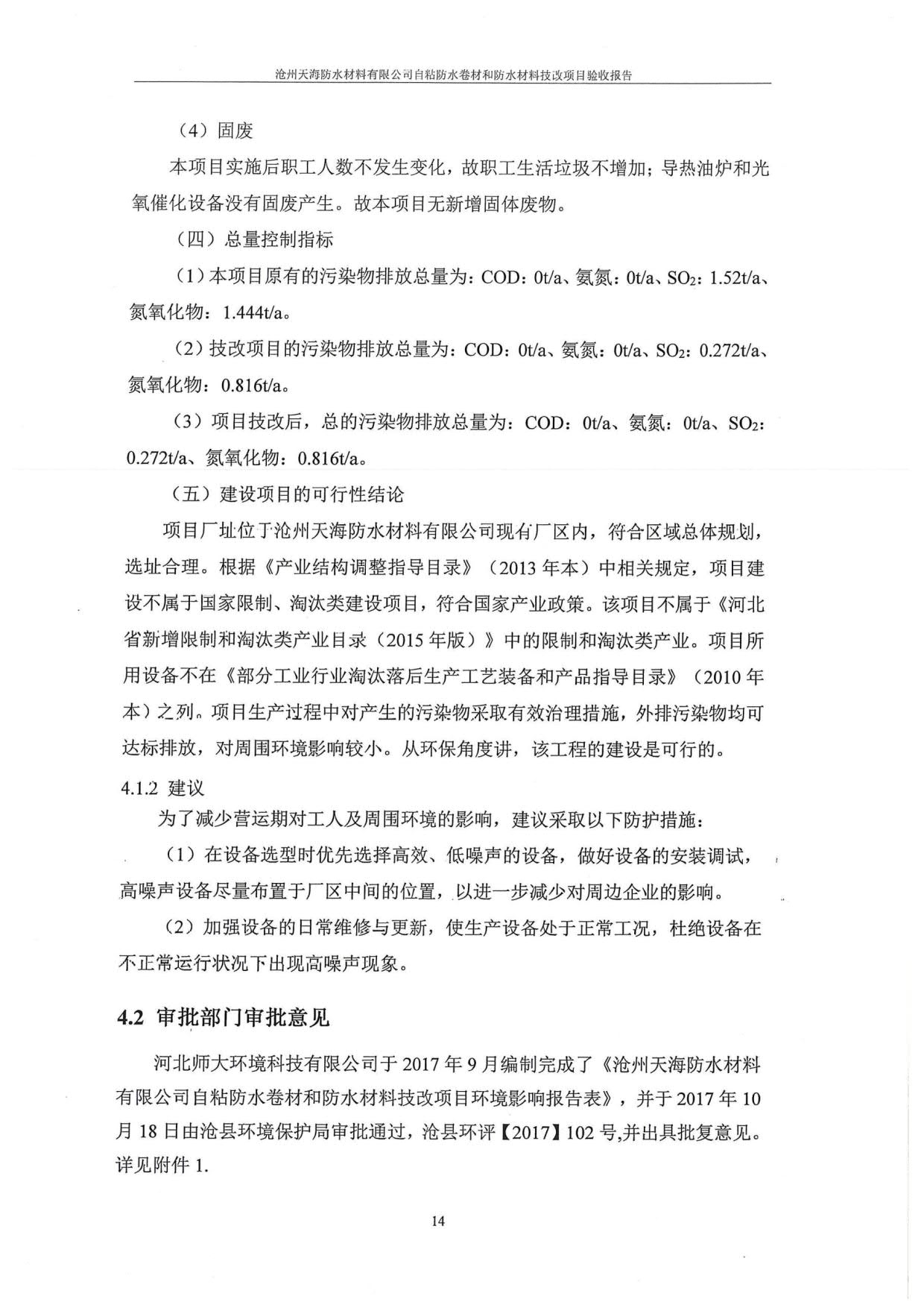 沧州天海防水材料有限公司自粘防水卷材和防水材料技改项目