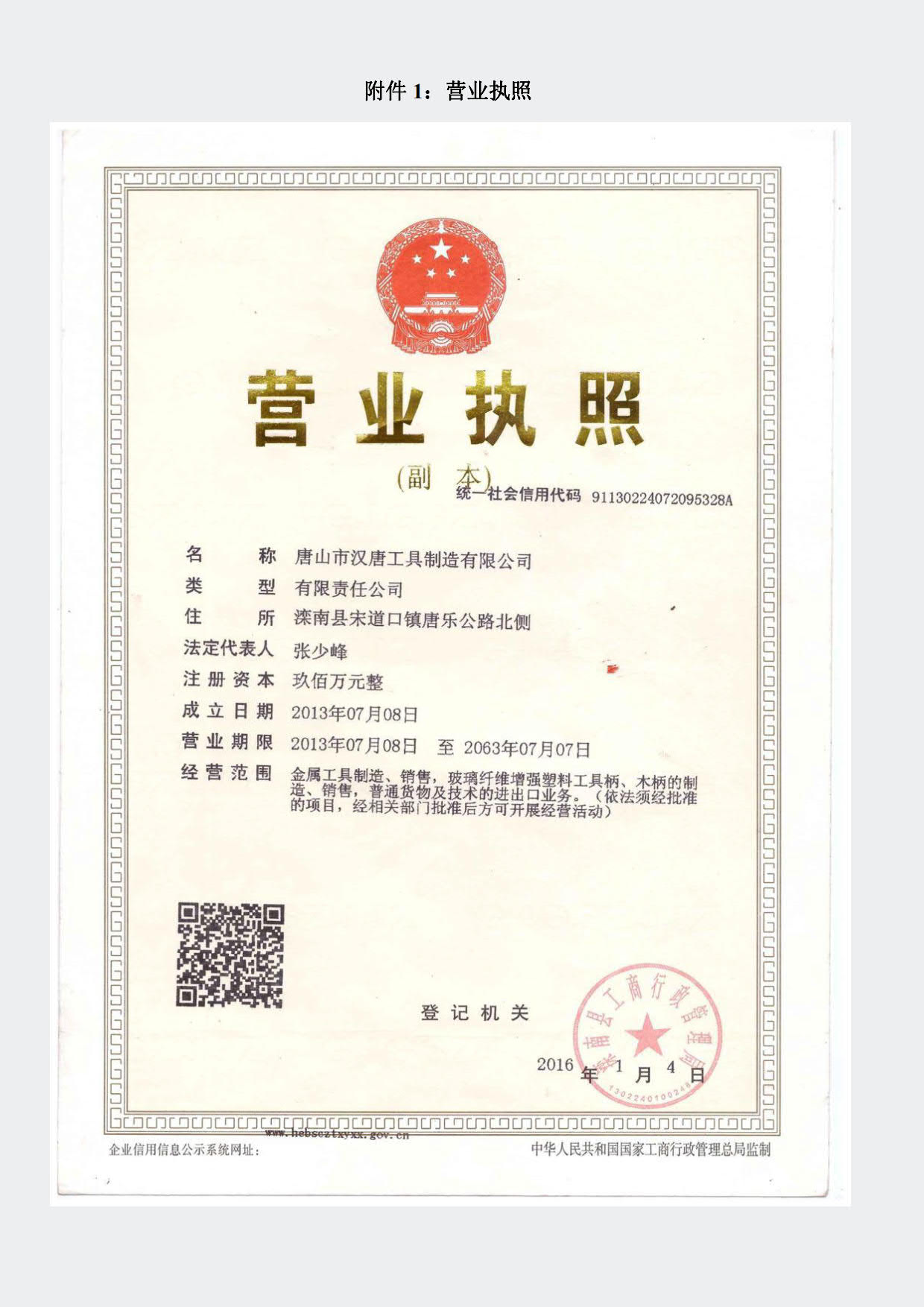 唐山市汉唐工具制造有限公司验收报告