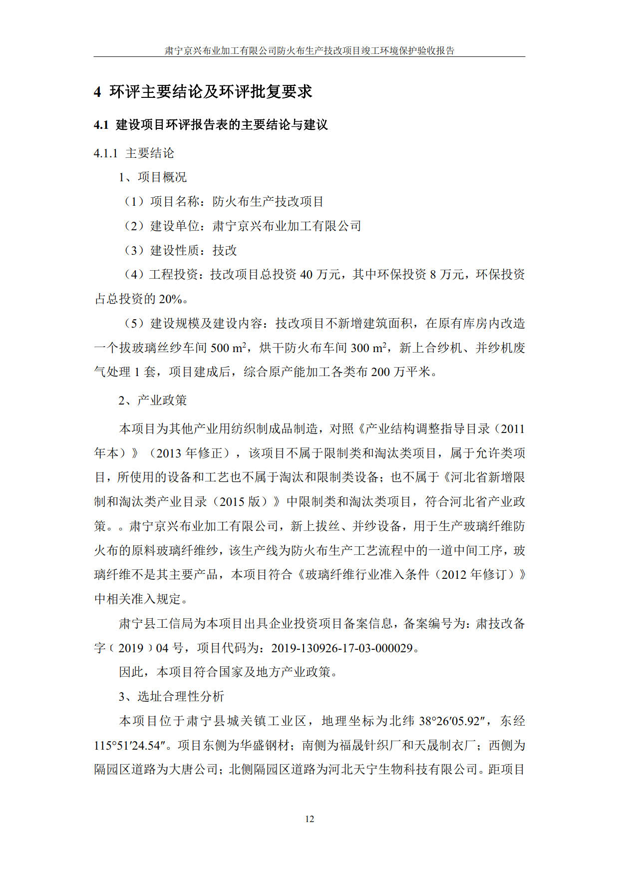 肃宁京兴布业加工有限公司防火布生产技改项目