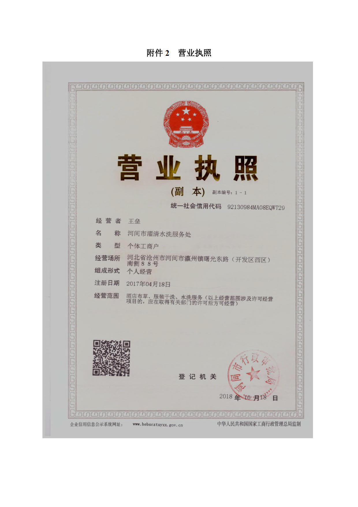 河间市濯清水洗服务处新建酒店用品洗涤线建设项目