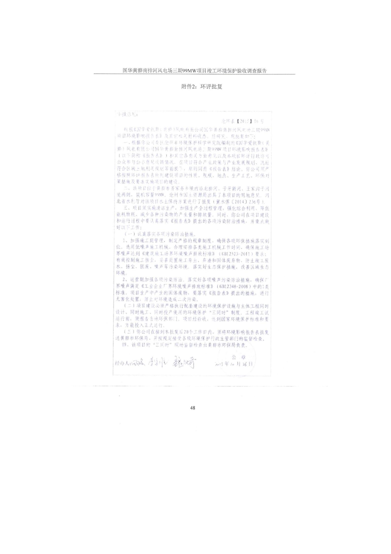 国华黄骅南排河风电场三期99MW项目验收报告